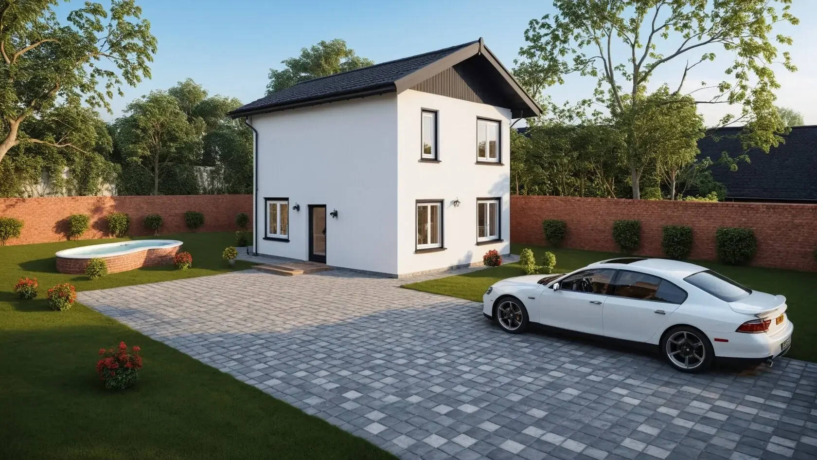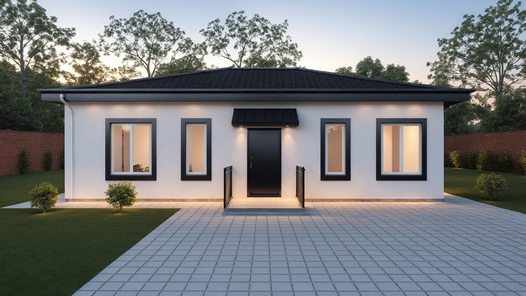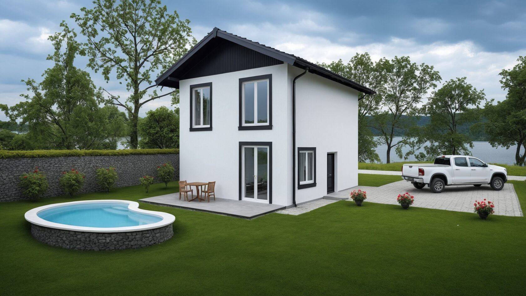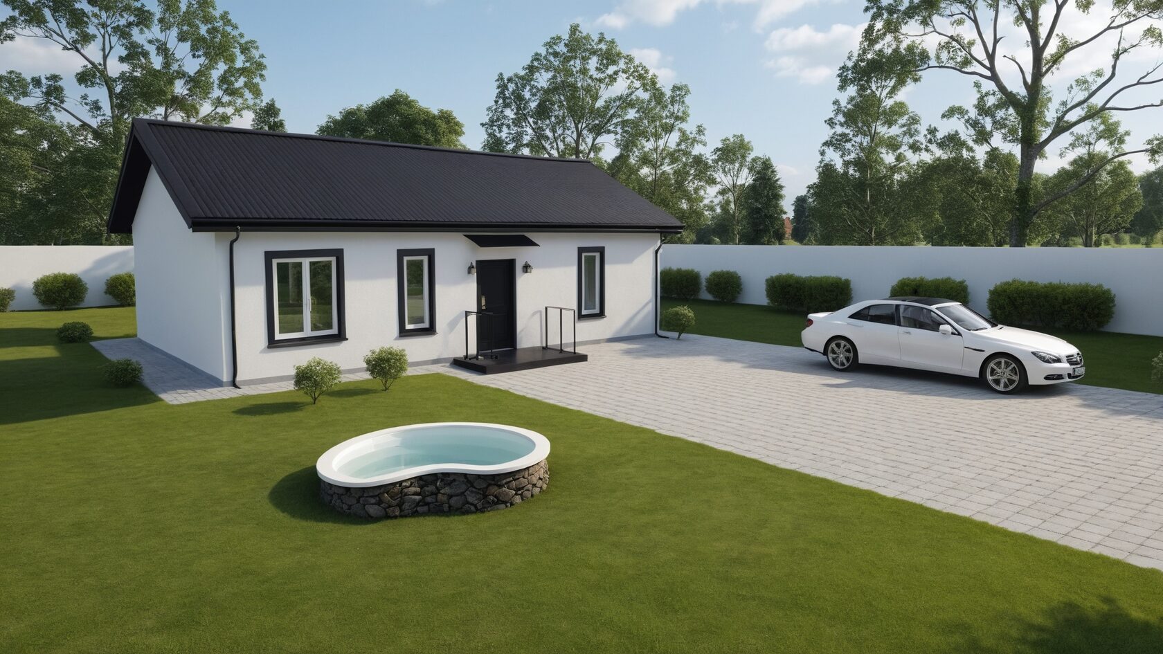 Общая площадь: 55 м² Жилая площадь: 43 м² Размер дома: 8.95 х 6.10 Высота потолка: 2,8 м Фундамент: плита Конструктив стен: несъемная опалубка 300 мм Утепление: внутреннее 50 мм внешнее 100 мм Толщина бетона: 150 мм Фасад: декоративная штукатурка (мокрый фасад)