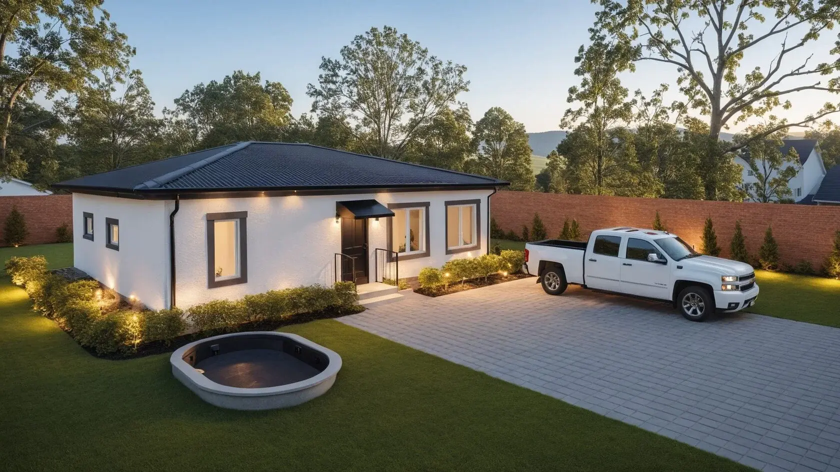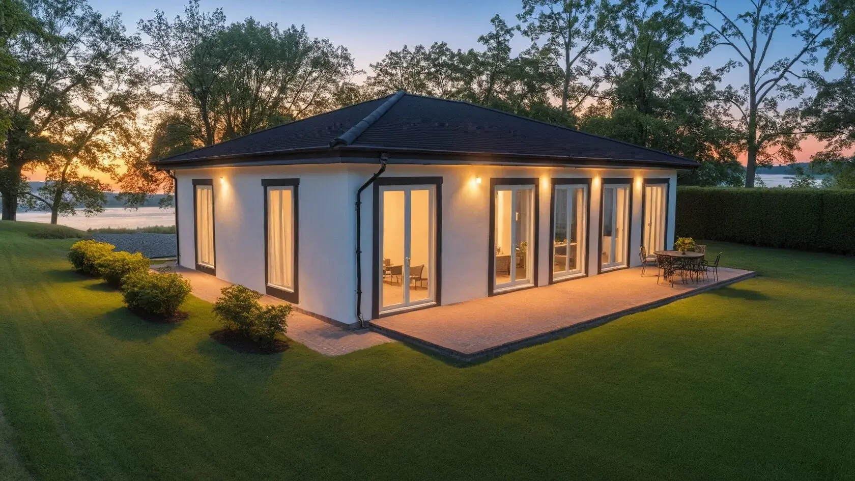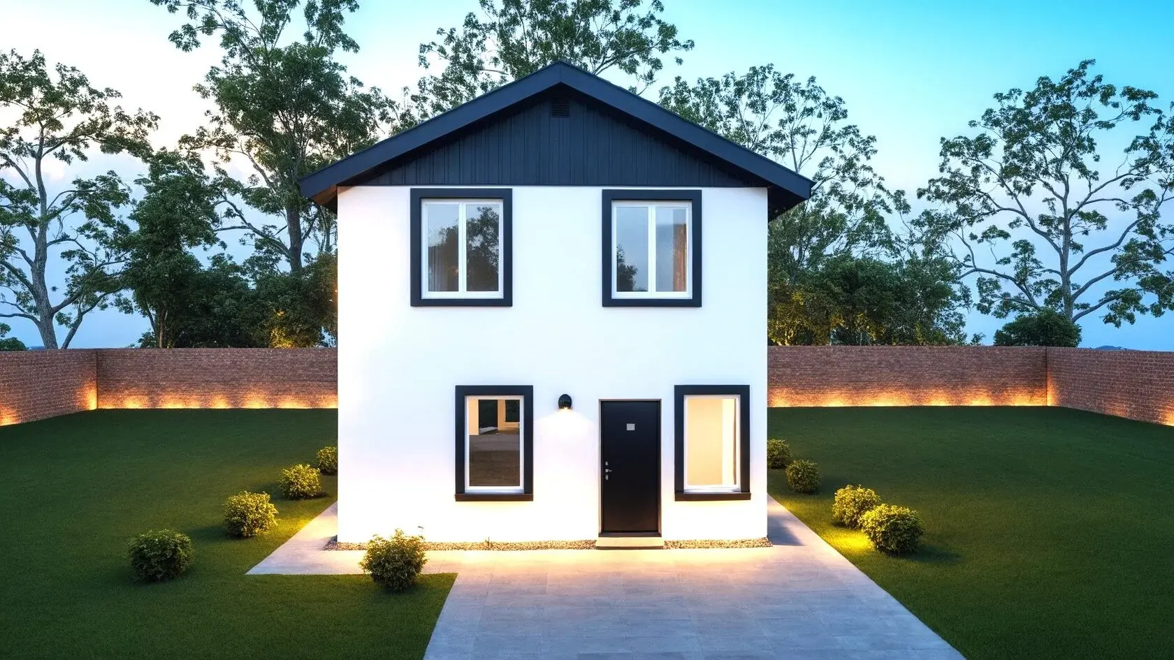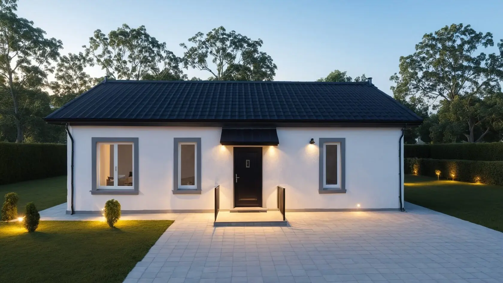 Общая площадь: 55 м² Жилая площадь: 43 м² Размер дома: 8.95 х 6.10 Высота потолка: 2,8 м Фундамент: плита Конструктив стен: несъемная опалубка 300 мм Утепление: внутреннее 50 мм внешнее 100 мм Толщина бетона: 150 мм Фасад: декоративная штукатурка (мокрый фасад)