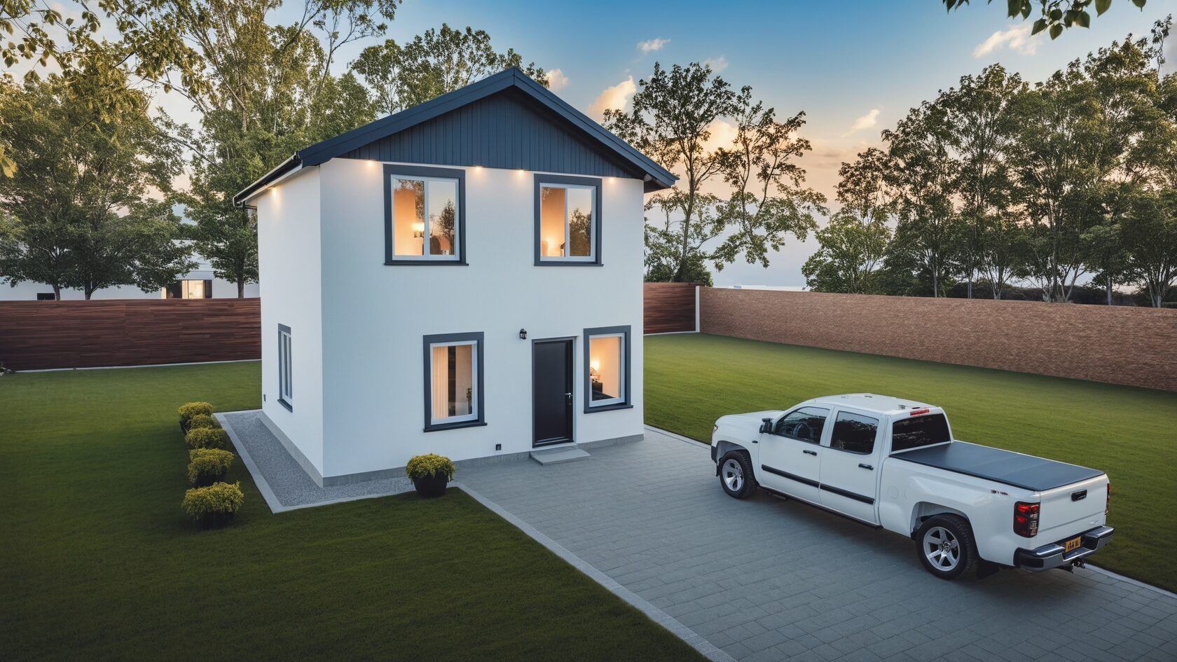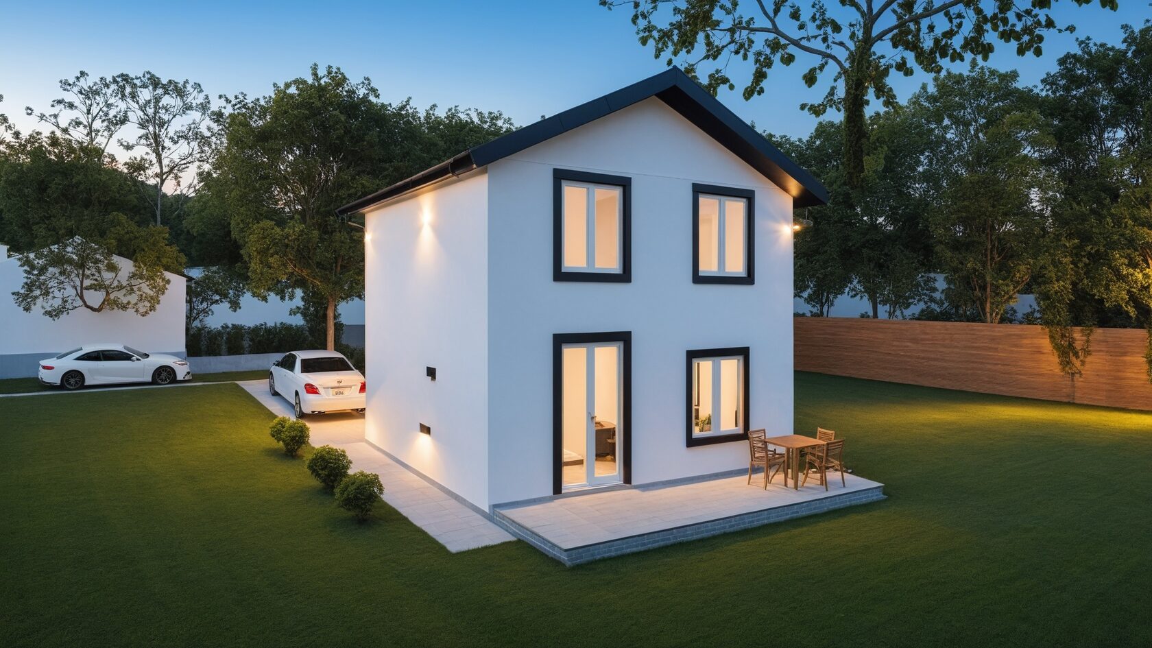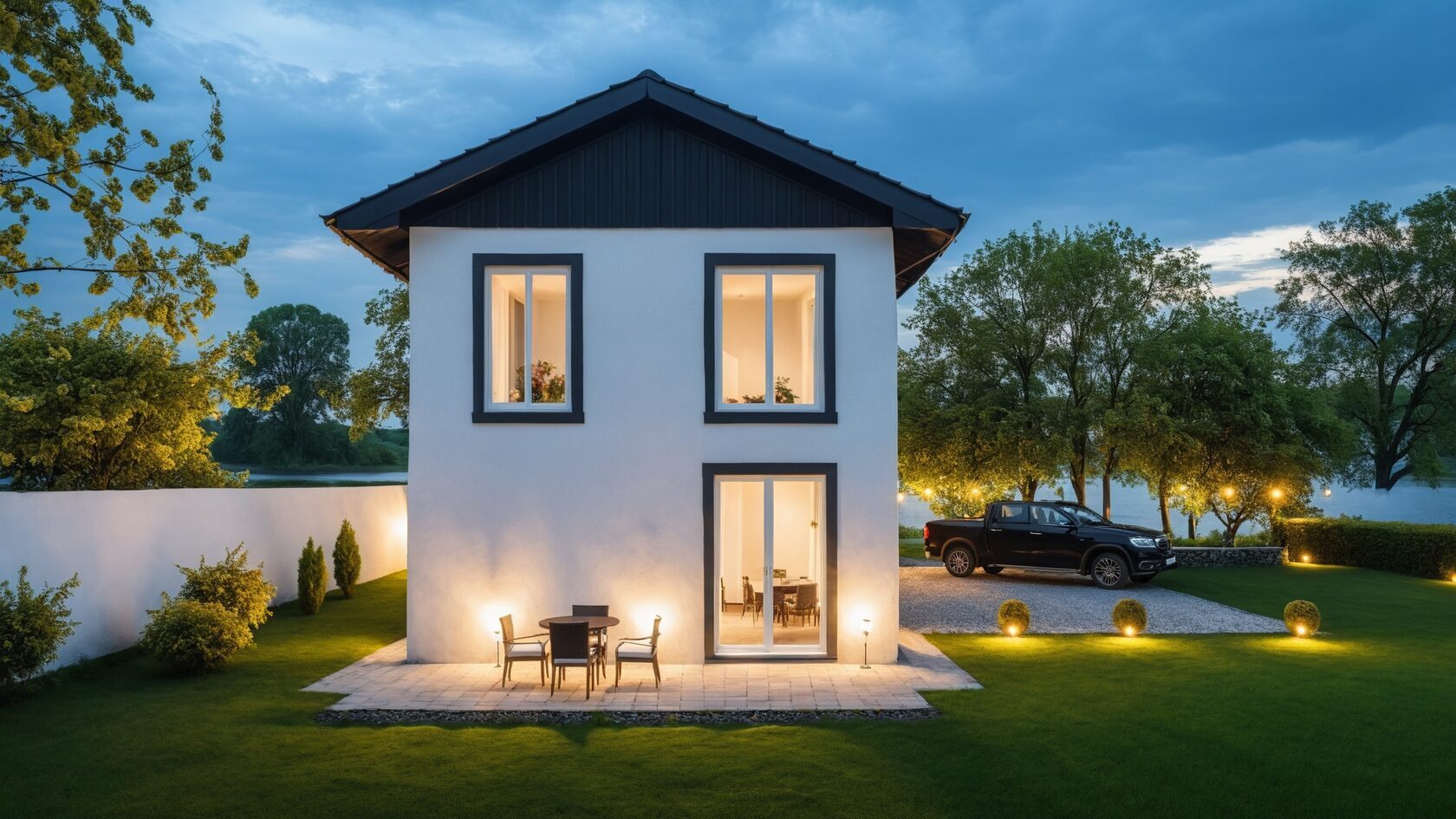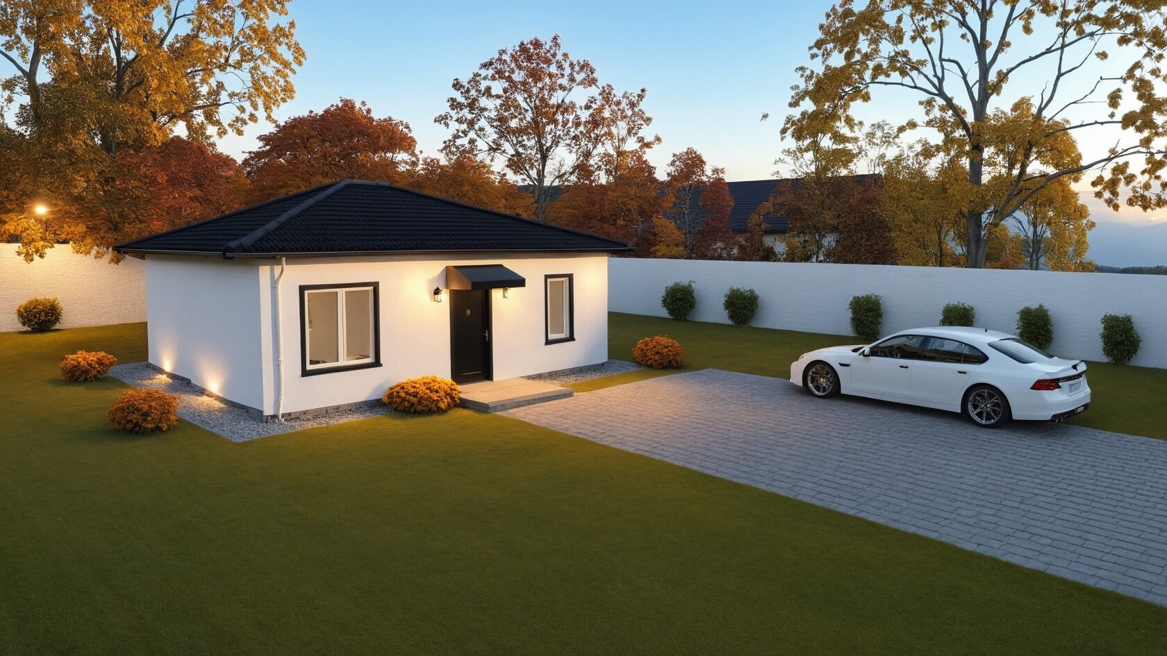 Общая площадь: 55 м² Жилая площадь: 43 м² Размер дома: 8.95 х 6.10 Высота потолка: 2,8 м Фундамент: плита Конструктив стен: несъемная опалубка 300 мм Утепление: внутреннее 50 мм внешнее 100 мм Толщина бетона: 150 мм Фасад: декоративная штукатурка (мокрый фасад)