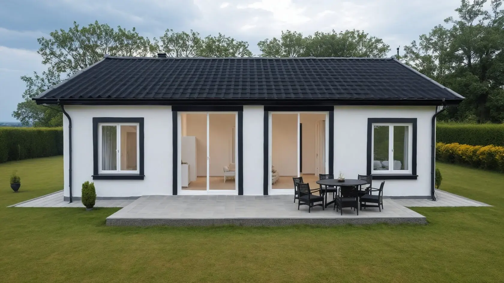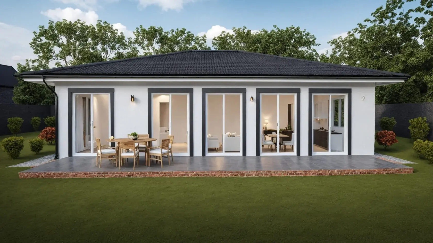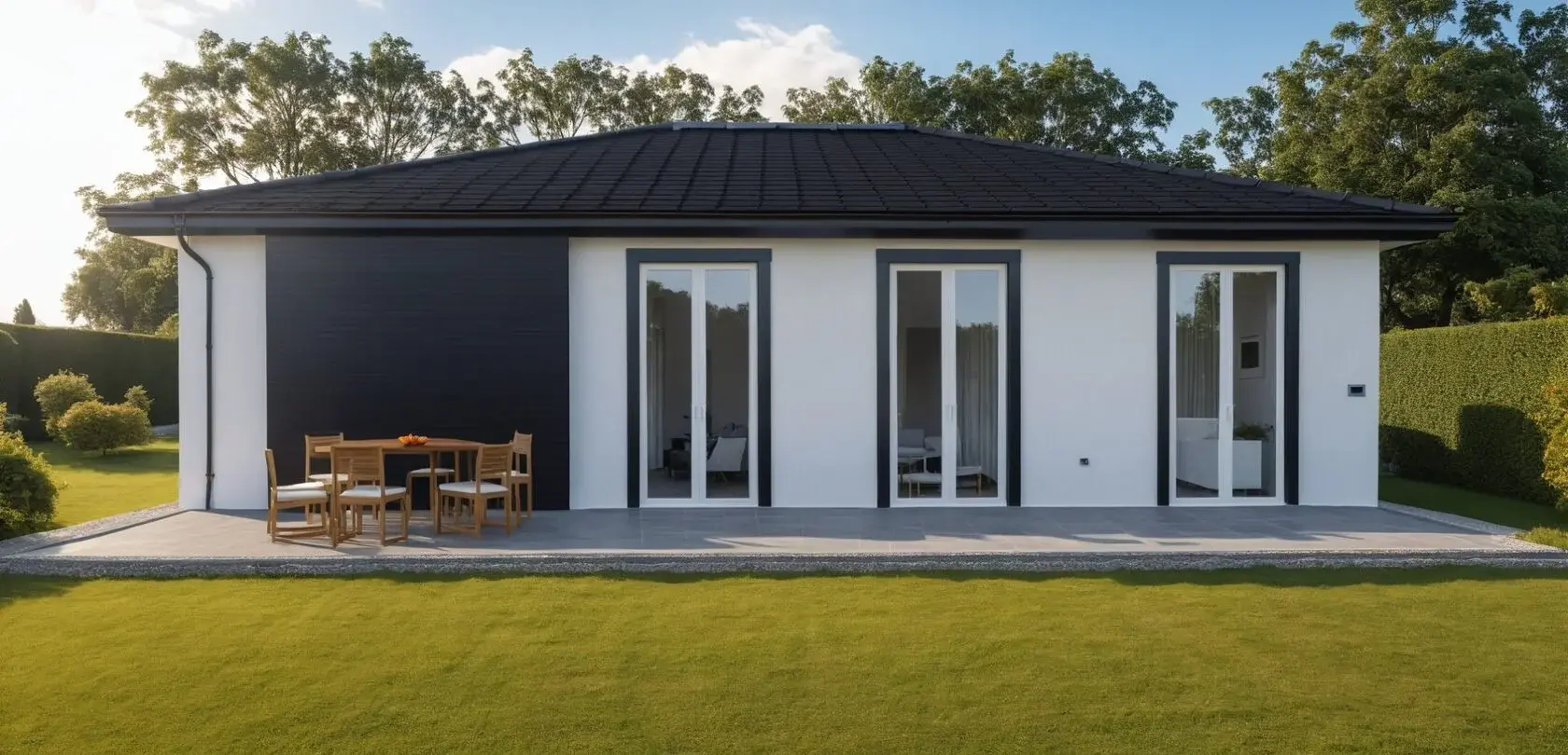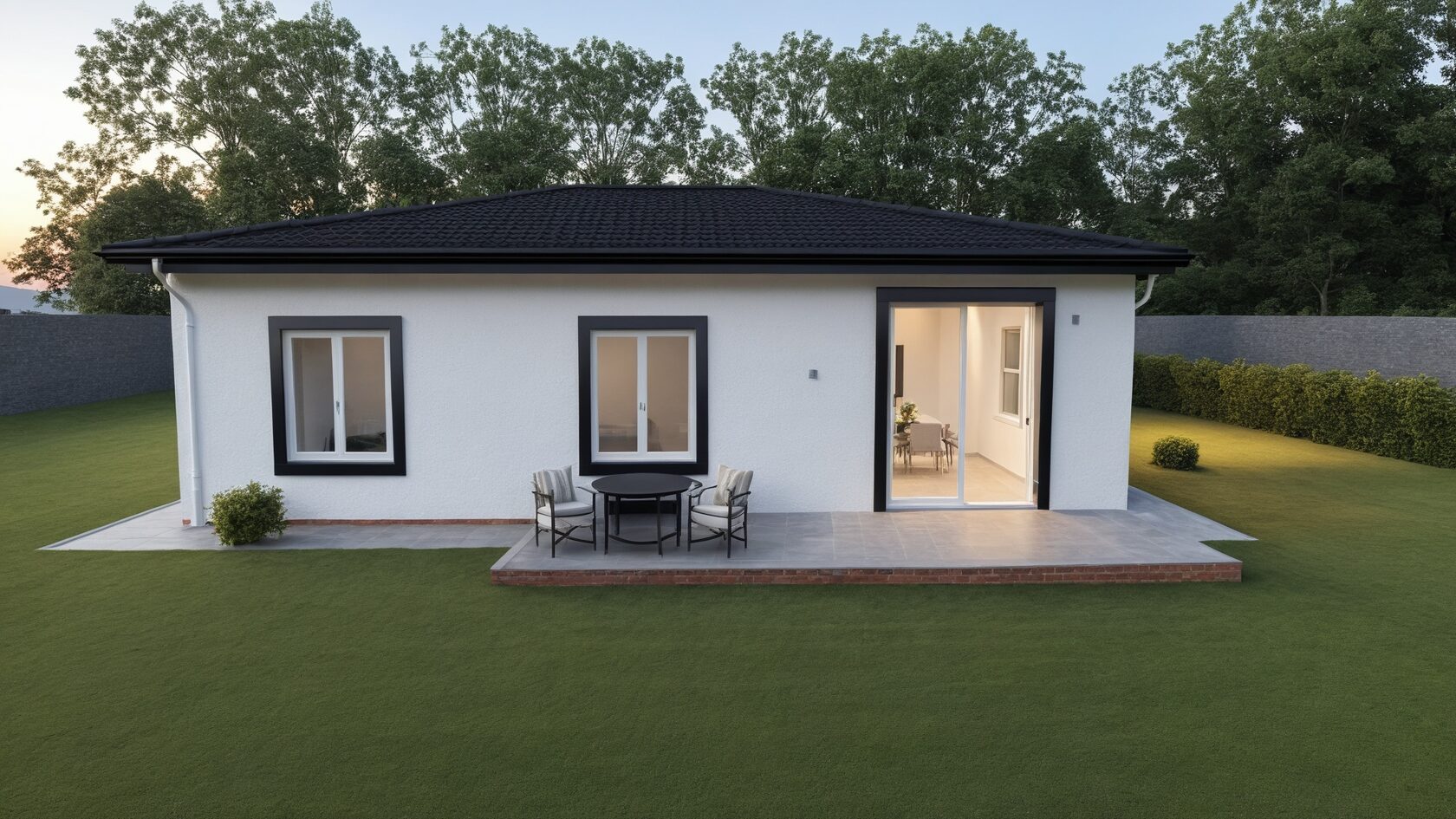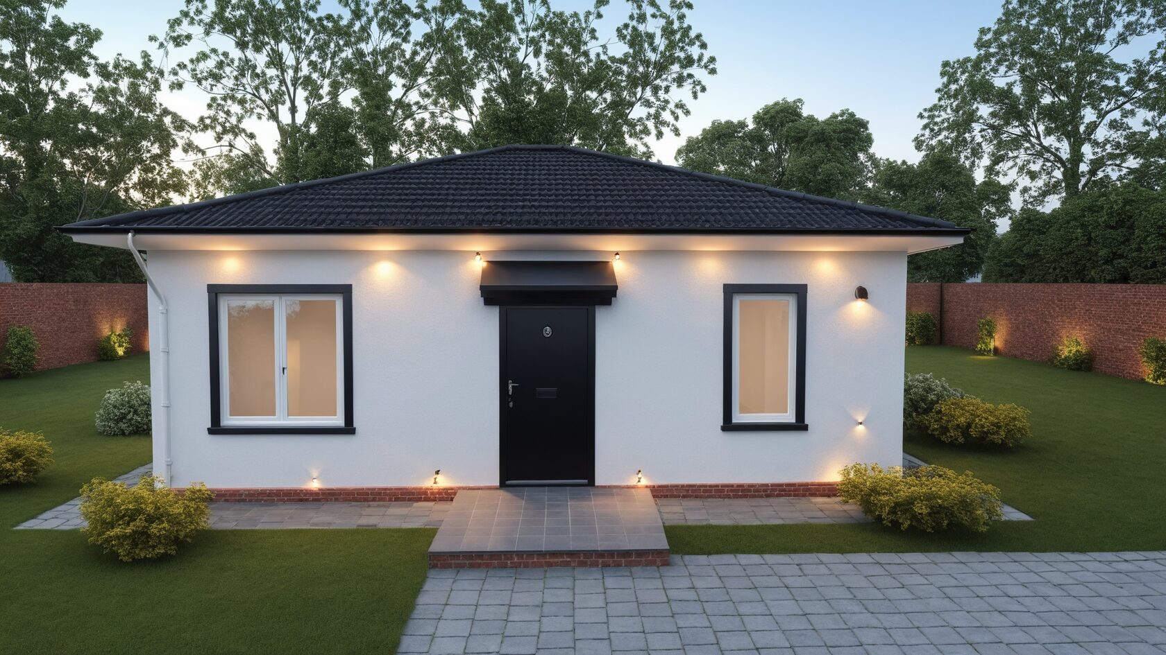 Проект Дачный Общая площадь: 47 м² Жилая площадь: 36 м² Размер дома: 6,9 х 6,9 Высота потолка: 2,8 м Фундамент: плита Конструктив стен: несъемная опалубка 300 мм Утепление: внутреннее 50 мм внешнее 100 мм Толщина бетона: 150 мм Фасад: декоративная штукатурка (мокрый фасад)