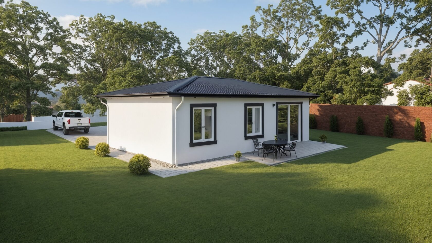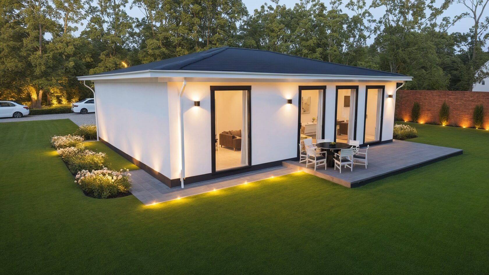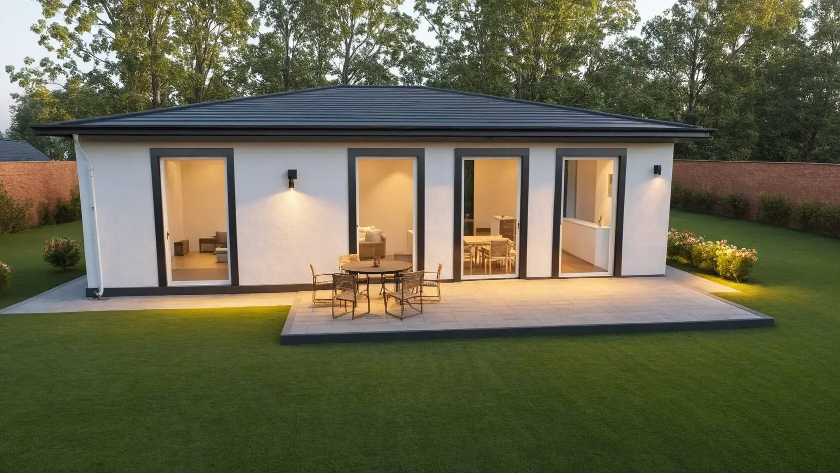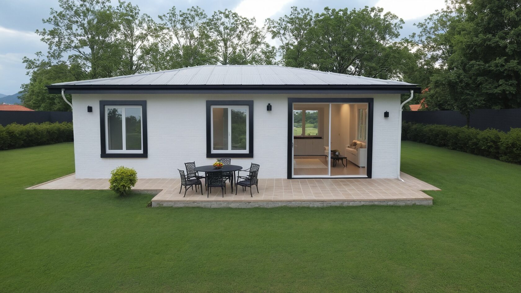 Проект Дачный Общая площадь: 47 м² Жилая площадь: 36 м² Размер дома: 6,9 х 6,9 Высота потолка: 2,8 м Фундамент: плита Конструктив стен: несъемная опалубка 300 мм Утепление: внутреннее 50 мм внешнее 100 мм Толщина бетона: 150 мм Фасад: декоративная штукатурка (мокрый фасад)