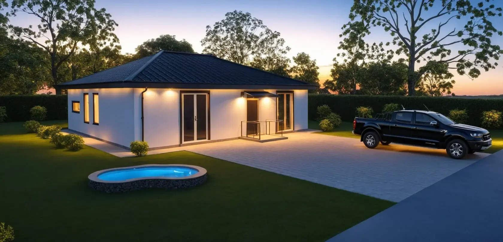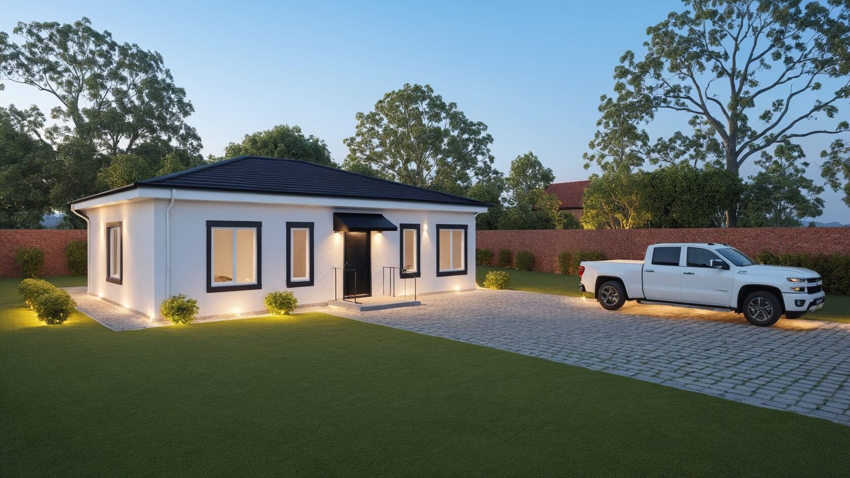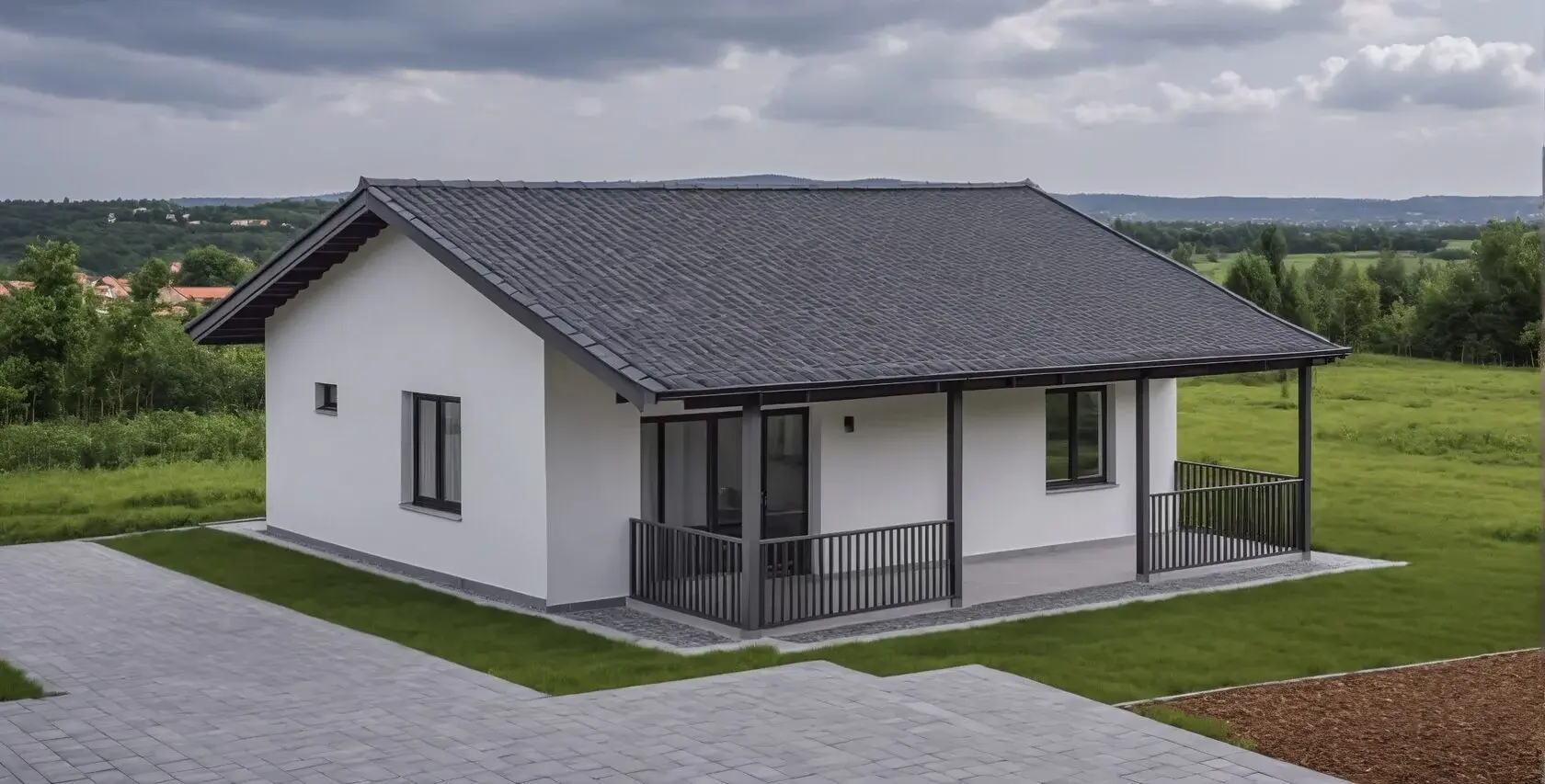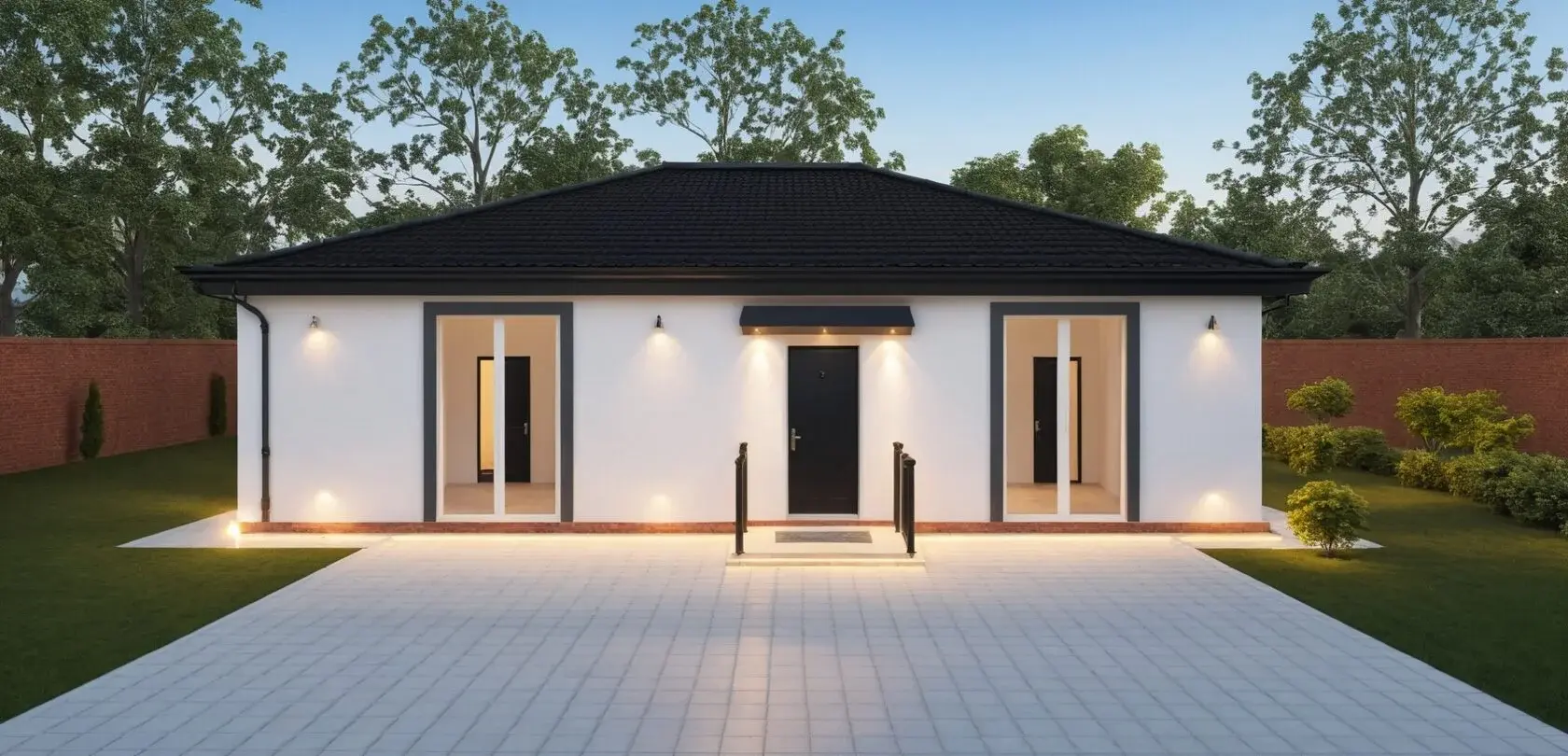 Общая площадь: 66 м² Жилая площадь: 54 м² Размер дома: 11 х 6 Высота потолка: 2,8 м Фундамент: плита Конструктив стен: несъемная опалубка 300 мм Утепление: внутреннее 50 мм внешнее 100 мм Толщина бетона: 150 мм Фасад: декоративная штукатурка (мокрый фасад)